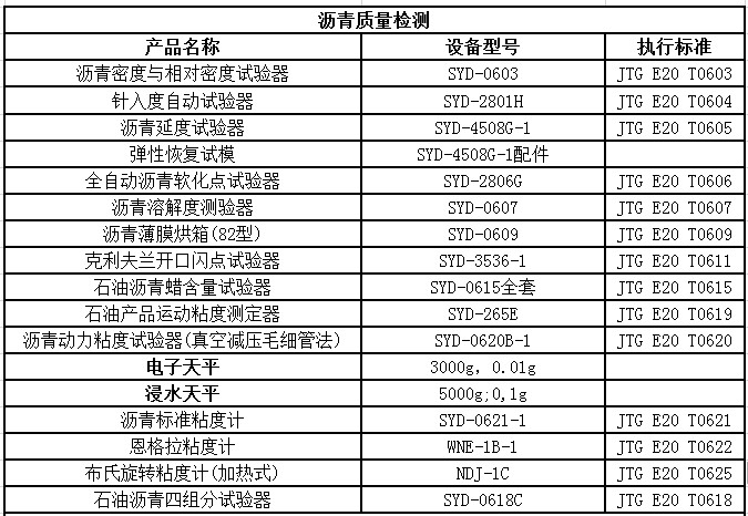 沥青在使用前检查的各项指标包括:针入度、延伸度、软化点、闪点,溶解度、蜡含量、薄膜烘箱加热试验等。交通部发布的行标JTG F40的公路沥青路面施工技术规范中对道路沥青和混合料配合比设计的相关检测指标做出了明确要求,具体技术要求如下: