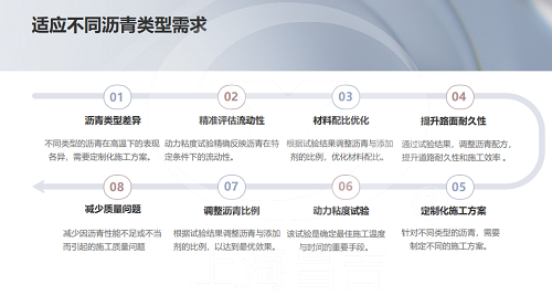 不同类型的沥青(如石油沥青和SBS改性沥青)在高温下的行为不同,动力粘度试验可以帮助确定最适合特定类型沥青的施工方法和材料配比。